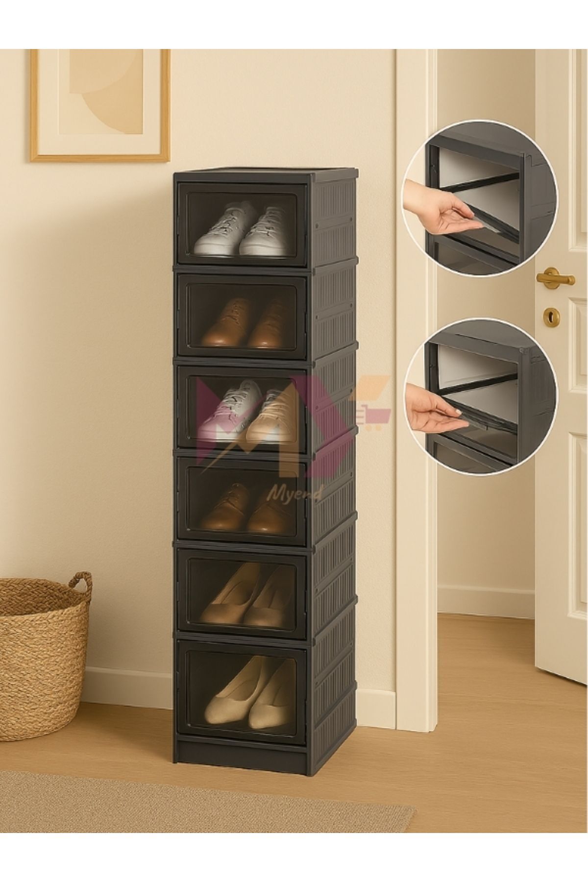 - Altı katlı tasarımı ile geniş depolama alanı sunar, ayakkabılarınız için ideal bir düzen sağlar.