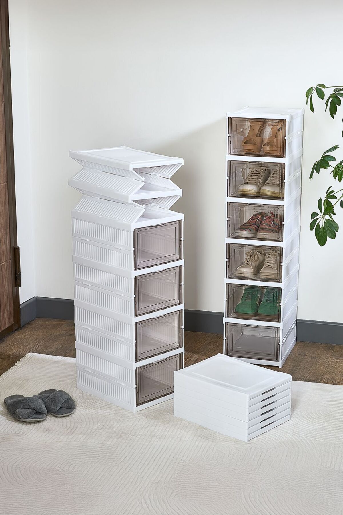 - Altı parçadan oluşan set, farklı boyutlardaki ayakkabılarınız için ideal saklama çözümleri sunar.
