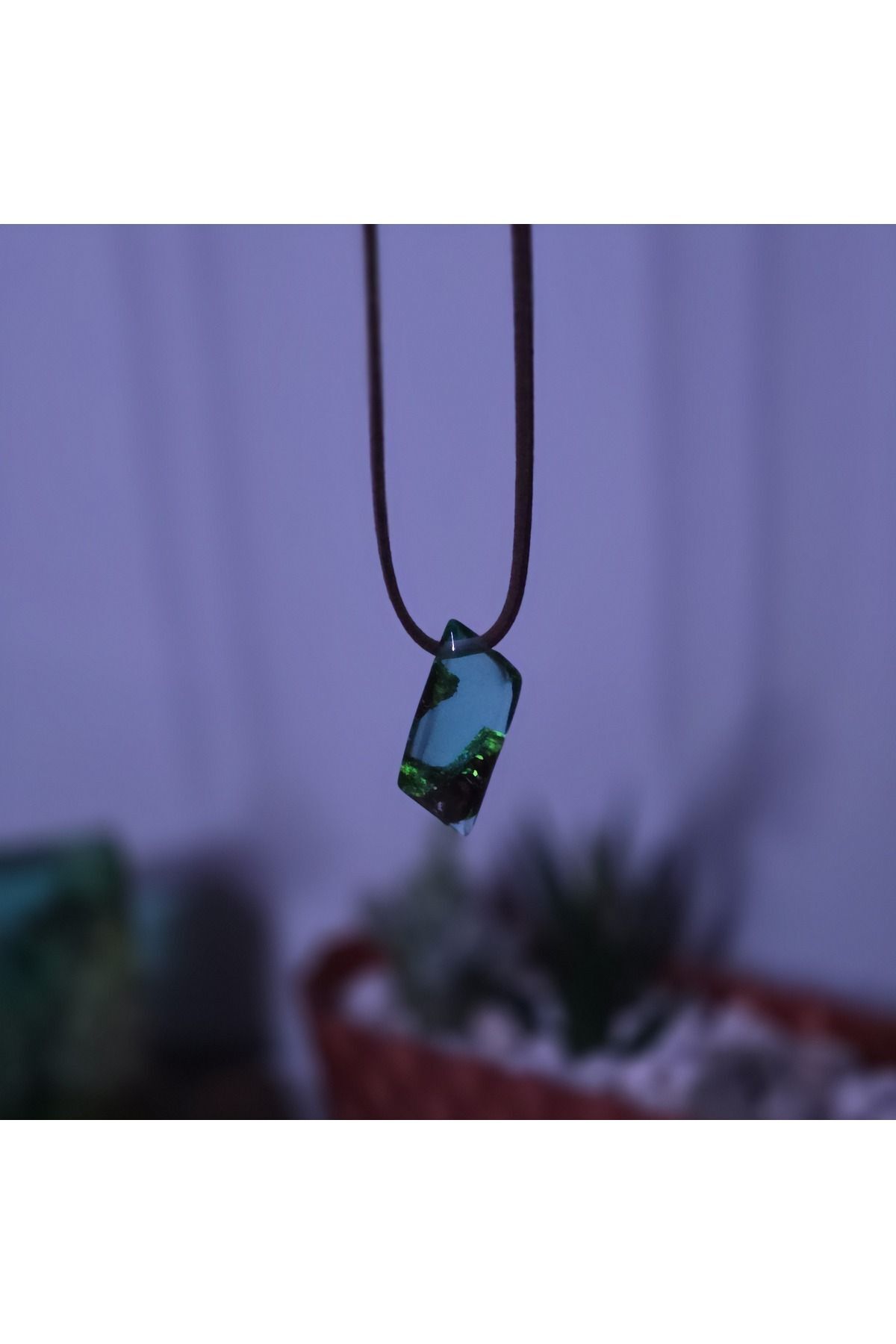 Epoxy ahşap bileşeni ile üretilen bu kolye, parlak ve canlı bir görünüm kazandırarak her türlü kıyafetle uyum sağlar