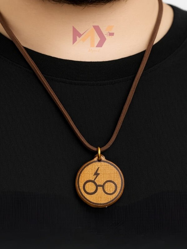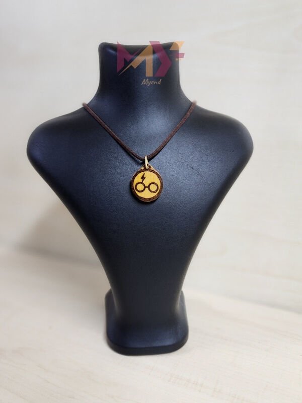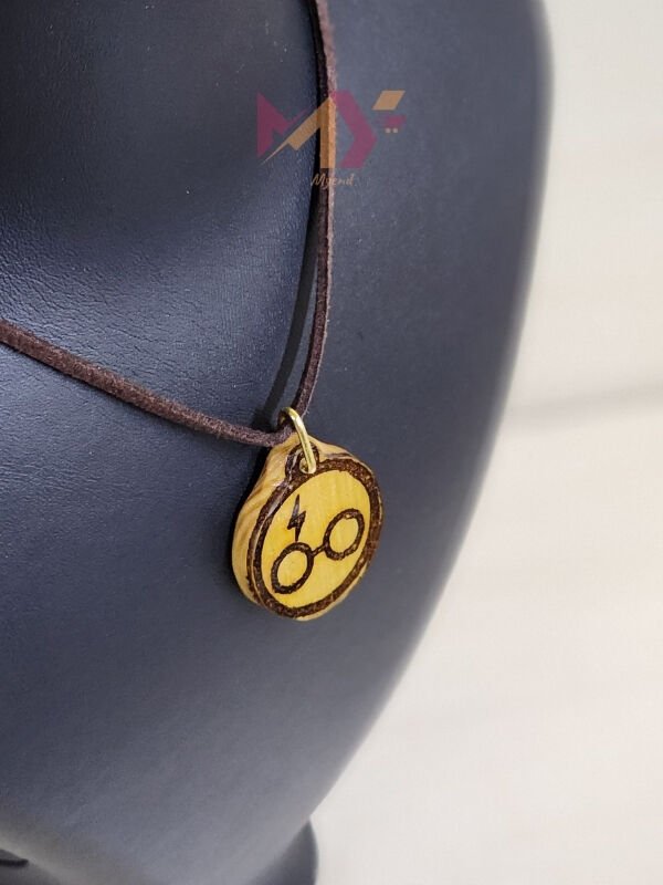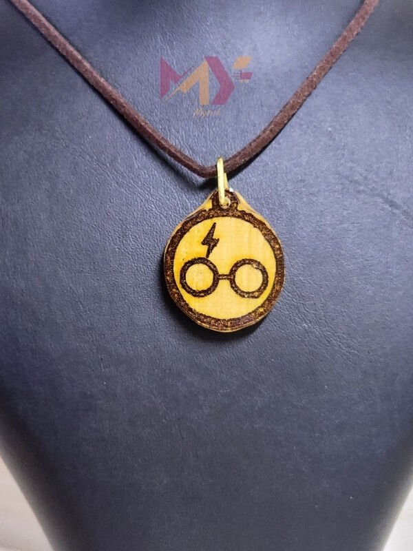 - -Harry Potter’ın ikonik gözlüğü ve yıldırım sembolünü taşıyan bu kolye, doğal ahşaptan yapılmıştır.