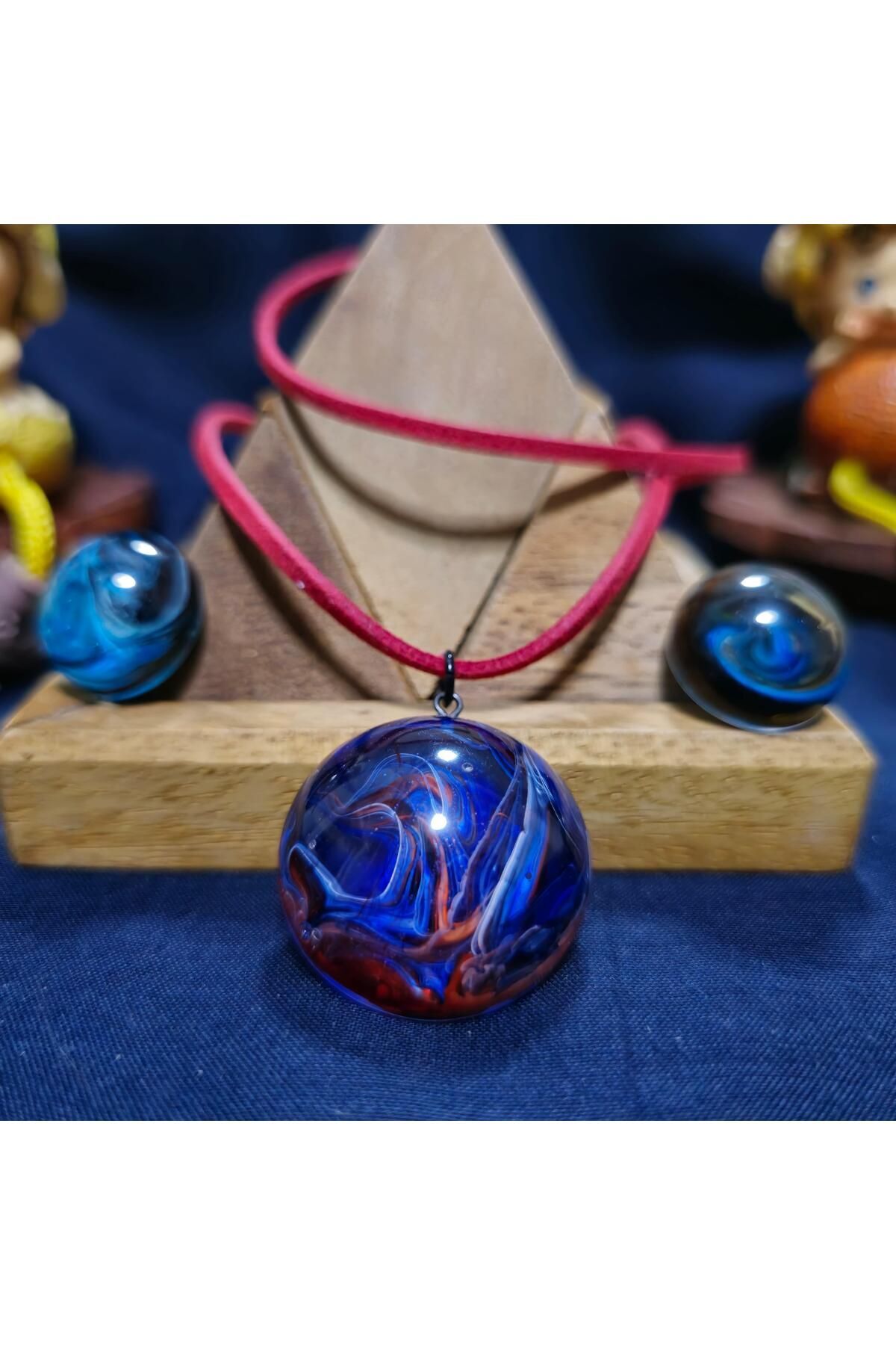 Özel Tasarım Ebru Epoksi Kolye Küpe Set Mavi
